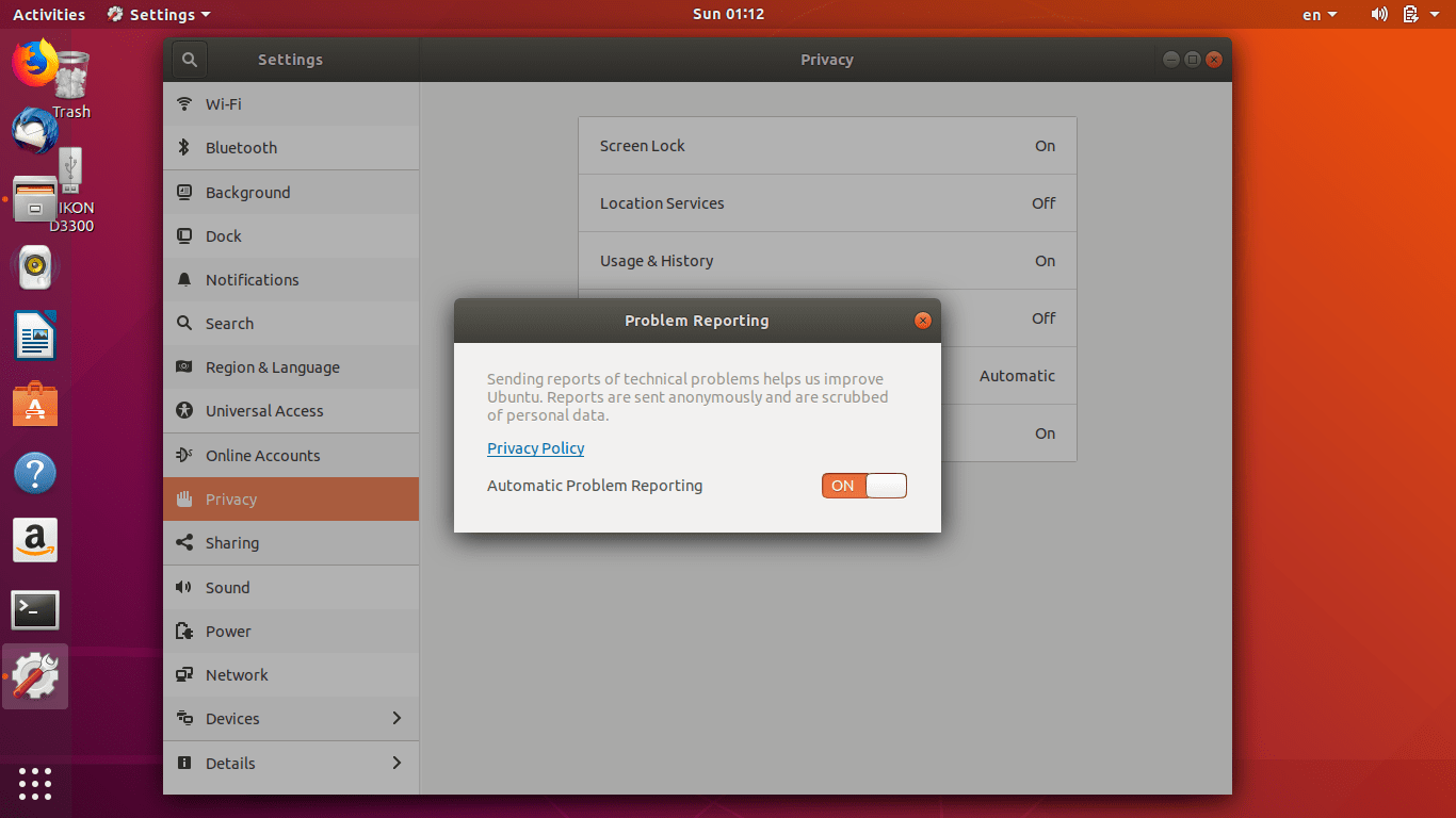 One of the other changes with Ubuntu 18.04 Bionic Beaver beta improvements is regarding the default privacy settings. Ubuntu now saves your usage history by default, but it seems like there’s no need to panic as they explicilty state that these data aren’t shared across network (let’s hope they don’t!). And there’s an option to opt-out as well, in case you don’t trust them! There are also a couple of other privacy settings as you can see in the below screenshot: